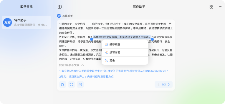 报告初稿生成后,您可以根据需求进行推荐段落,润色和续写等。